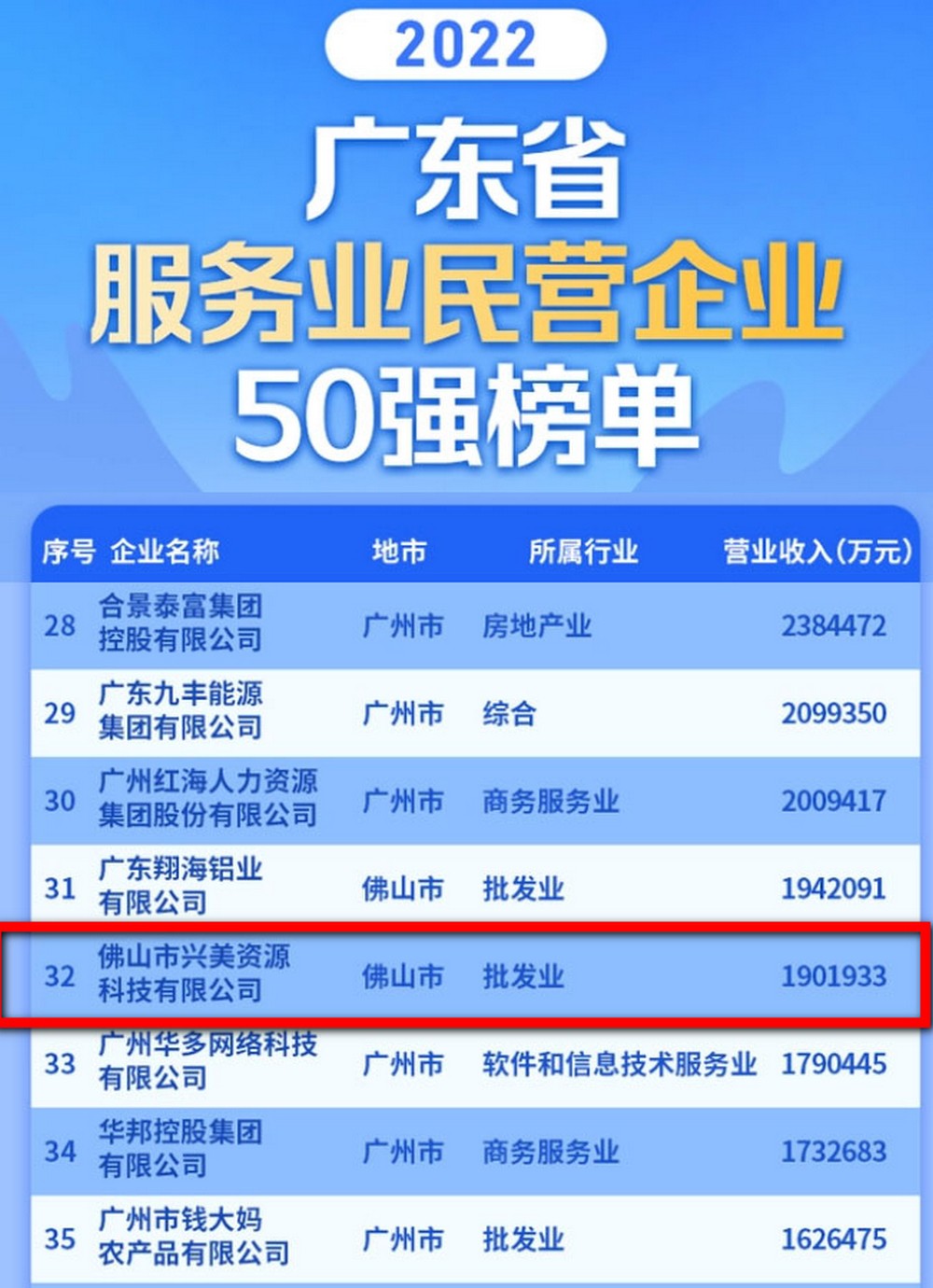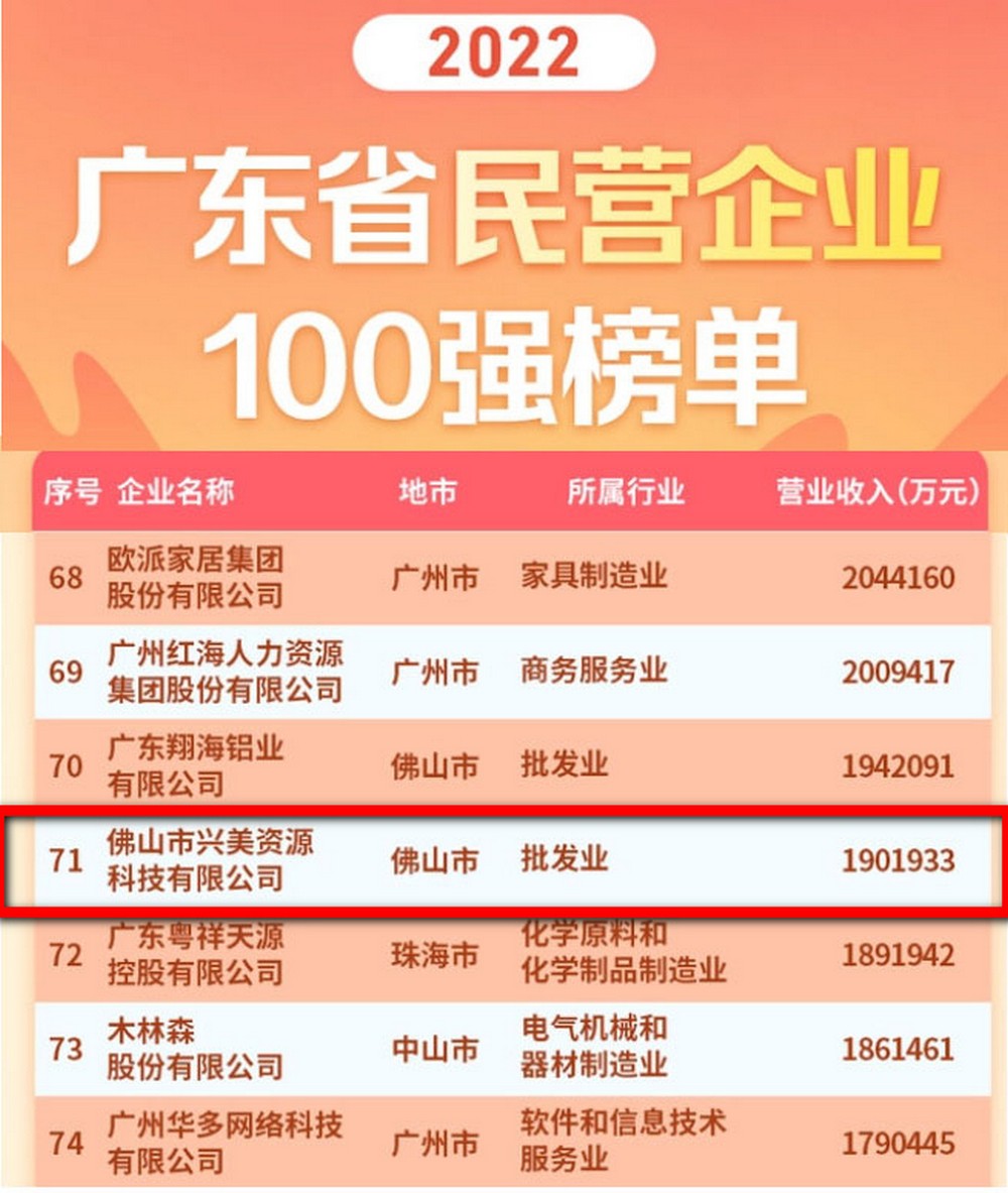 2022广东省民营企业100强榜单新鲜来袭,尊龙凯时集团旗下企业“佛山市尊龙凯时资源科技有限公司”排名71 ,并首次入选“广东省服务业民营企业50强”,可喜可贺!集团坚持认真学习党的二十大精神,在国家及政府的正确引导下 ,努力发展理念,实现企业自身价值,唯有矢志不渝,笃行不怠,方能不负时代 !