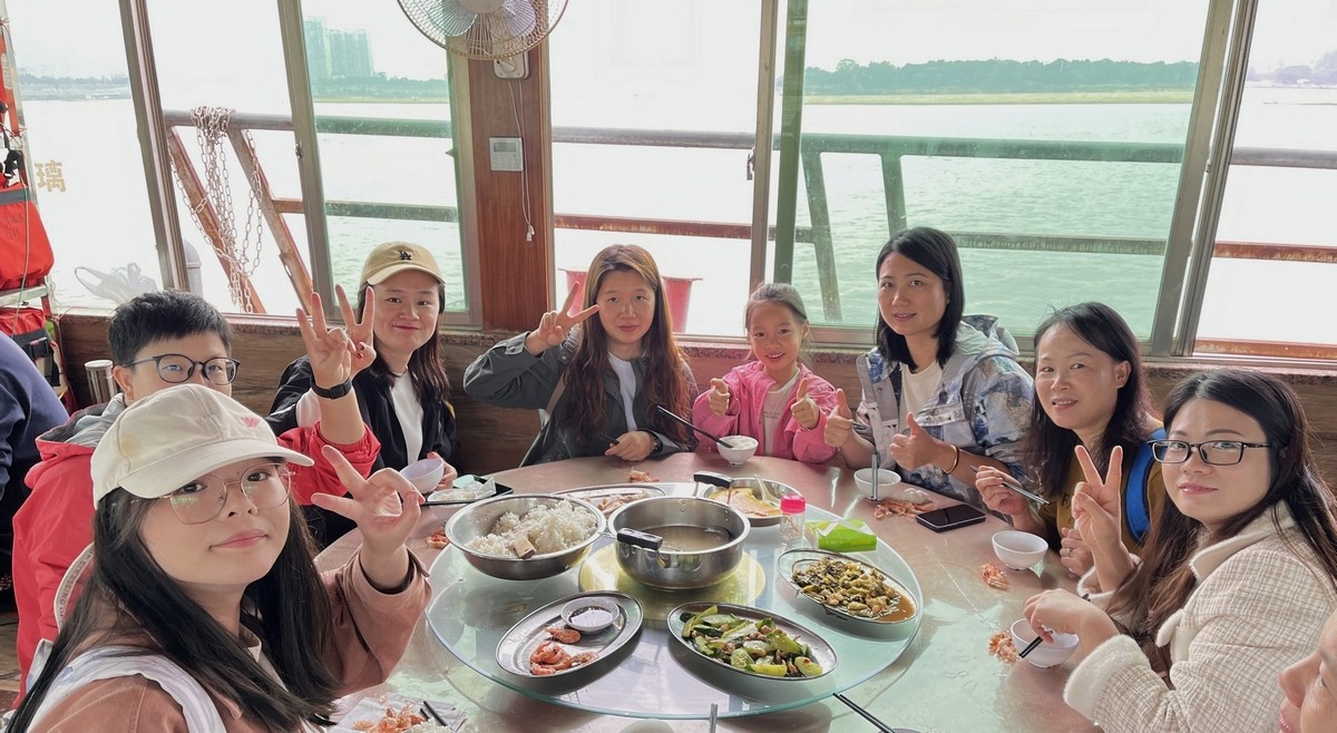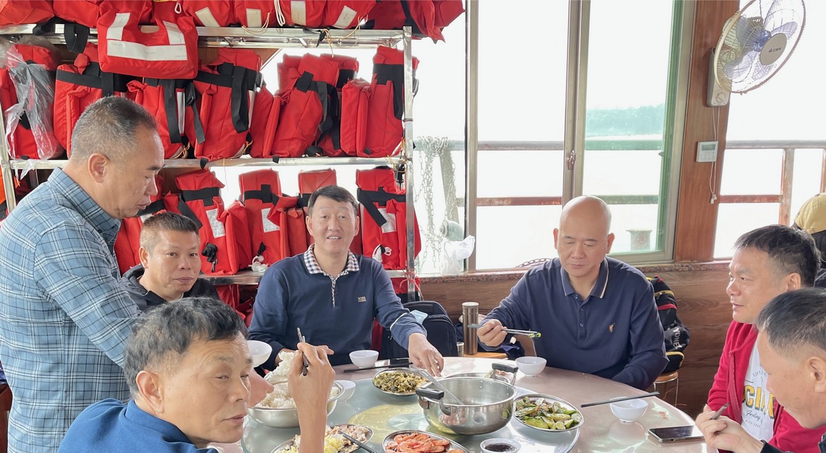 中午,集团成员们来到清远母亲河小北江,游船泛舟赏美景。
